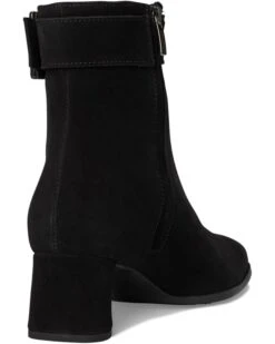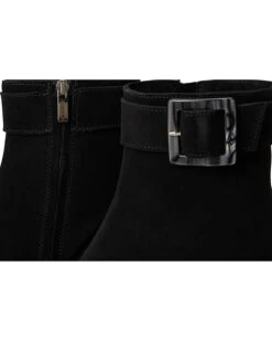 - The epitome of chic sophistication, the La Canadienne® Alix suede bootie delivers timeless style at its best. Featuring a practical side zipper closure, a pointed toe shape, and a comfortable block heel, it’s sure to attract many compliments. The neutral tortoise print buckle adds the finishing touch. Our City Dry technology features waterproof Italian suede upper and a breathable polyester microfiber lining that keeps you comfortable whether indoors or outside. The cushioned memory foam insole adds comfort with every step.