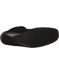 I am a Texas-based consultant with clients in New York, so I was looking for functional boots that would serve in both climates. These fit the bill – they are not too much for the mostly wet winters in north Texas, but they handle rain, sleet, and snow in New York without difficulty. Despite looking less than weather-friendly, they are legitimately waterproof. I accidentally stepped in a puddle that was several inches deep, and my feet stayed completely dry. Water beads and rolls off, and salt brushes off easily once dry, and the boots do not look like they’ve been through bad weather. Where the boot bends at the toe, the suede creased visibly on the first wear, but this isn’t a serious flaw and does not look terrible. These boots ran true to length, but narrow. They are also narrow in the ankle. I have very narrow feet and slim ankles, so this was not a problem for me. The footbed is cushioned more than the average women’s boot, but is not plush. There is not much in the way of arch support, but this can be easily solved with an insole. I wore these boots all day, three days running with no break in, and found them comfortable, stylish (for winter boots), and weather-effective.