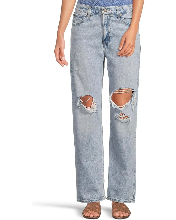 - Keep up with the comfort and exude a chic style wearing Levi’s® Premium Dad Jean that are the perfect fuss-free lightweight pants. The dark wash jeans features a mid-rise smocked elastic waistband for an easy pull-on convenience, belt loops for a customizable fit, and a straight leg style with cropped hem designed to hit right above the ankle. The zip-fly and button closure is designed for convenience, five-pocket styling adds to the funtionality, and the relaxed yet flattering fit adds extra room for a subtle edge.